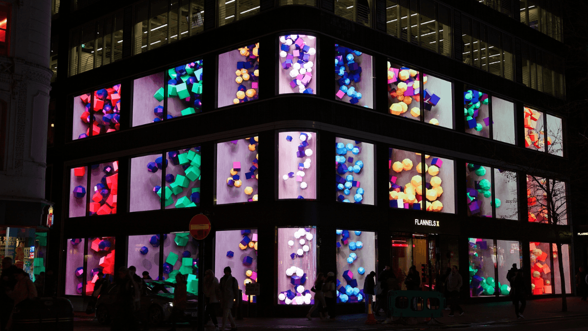 With 37 striking 8K LED screens, THE CUBE will be the first of its kind for brands. How did the idea behind the collaboration between FLANNELS, Pixel Artworks, and London Lites to launch London’s newest 3D DOOH destination come about?