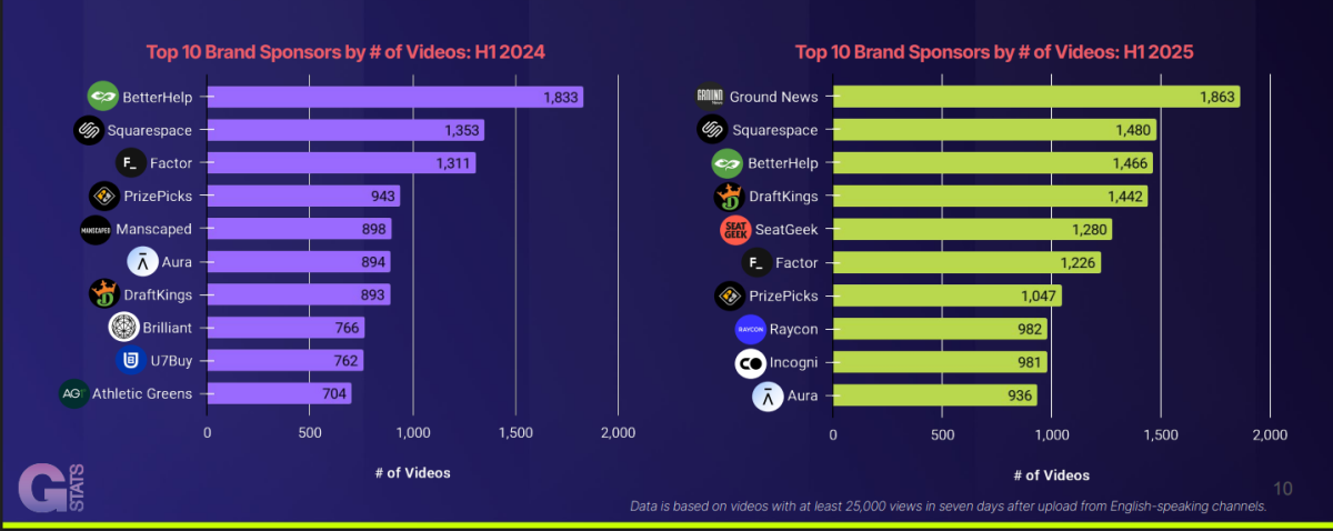 The number of sponsored videos on YouTube increased by at least 54% between H1 2024 and H1 2025, as brands spend more money on creator partnerships.