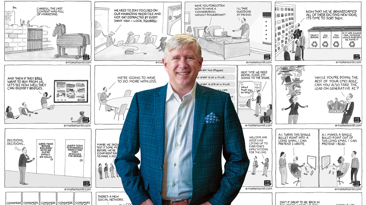 Tom Fishburne, creator of Marketoonist, has been drawing cartoons and making observations about the marketing industry for over two decades. This year, he spoke at Brand Week Istanbul 2024 and shared how humour can help us navigate change. Following his session, Fishburne sat down with MediaCat’s Content & Social Media Editor, Svilena Keane, to share how he became a cartoonist, why humour is an ‘underappreciated superpower’ and why creatives shouldn’t fear AI.